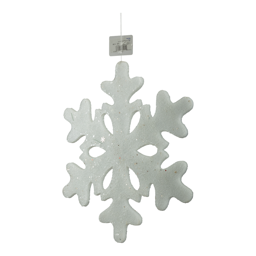 Produktinformation "Snöflinga med spegeleffekt, 40cm av skum med nylonhängare, ensidig"